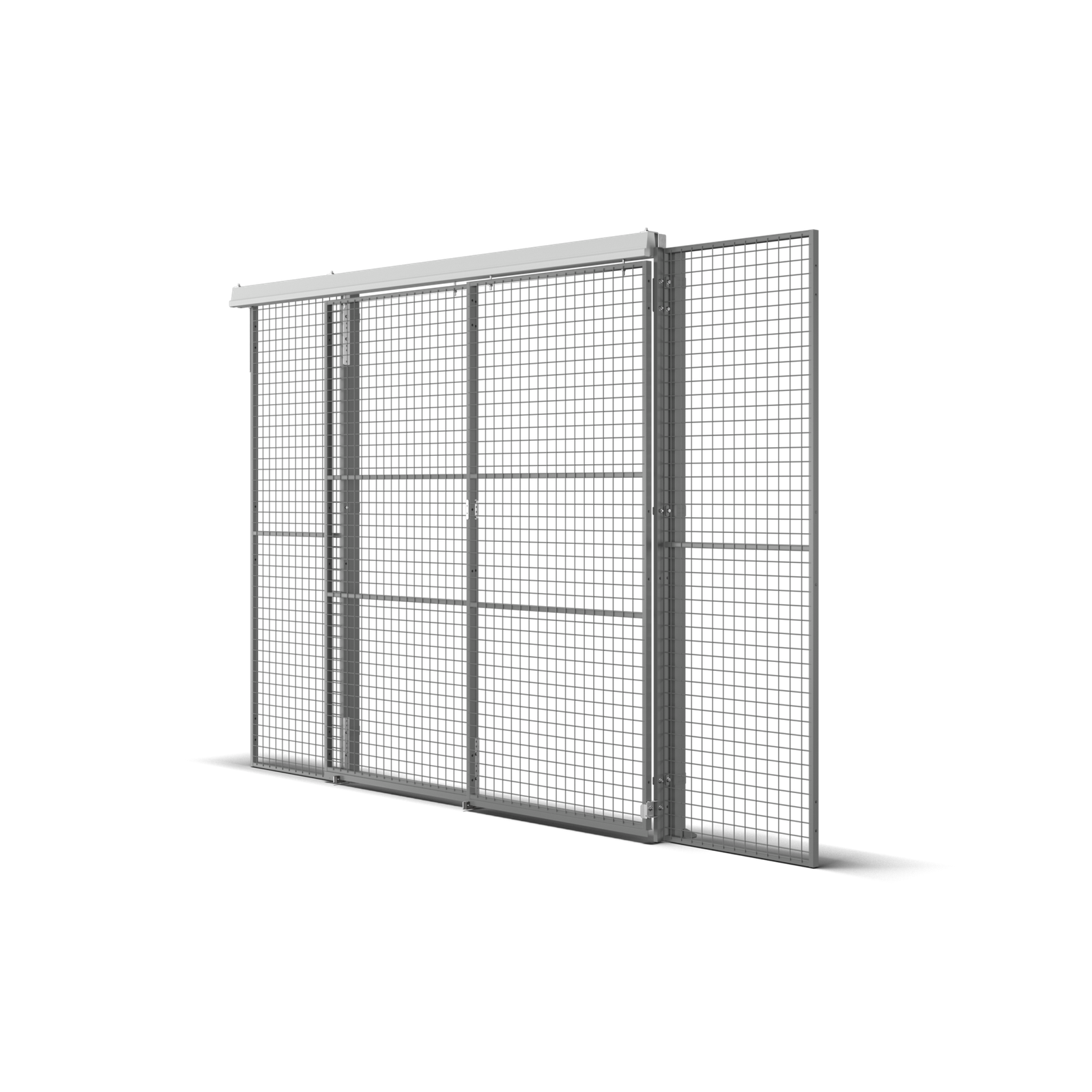 Our Carrier door uses a double-track rail to create a maximum opening at a minimum space. It consists of a wall panel and two door-leaf panels. When closed the first door leaf has carried the second door-leaf to the middle position and when fully opened the two door-leaf panels overlaps the wall panel at the same space in width. There are 2 width options: 1. Door leaf 980+980 mm with wall panel 1000mm 2. Door leaf 1180+1180 mm with wall panel 1200 mm Opening height is 2200 mm. Lock options are padlock, euro cylinder and assa cylinder. The runners above the door-leaf panels slide in a double-track aluminium top rail and guide rails beneath the door-leaf panels steer them firmly in the right direction.