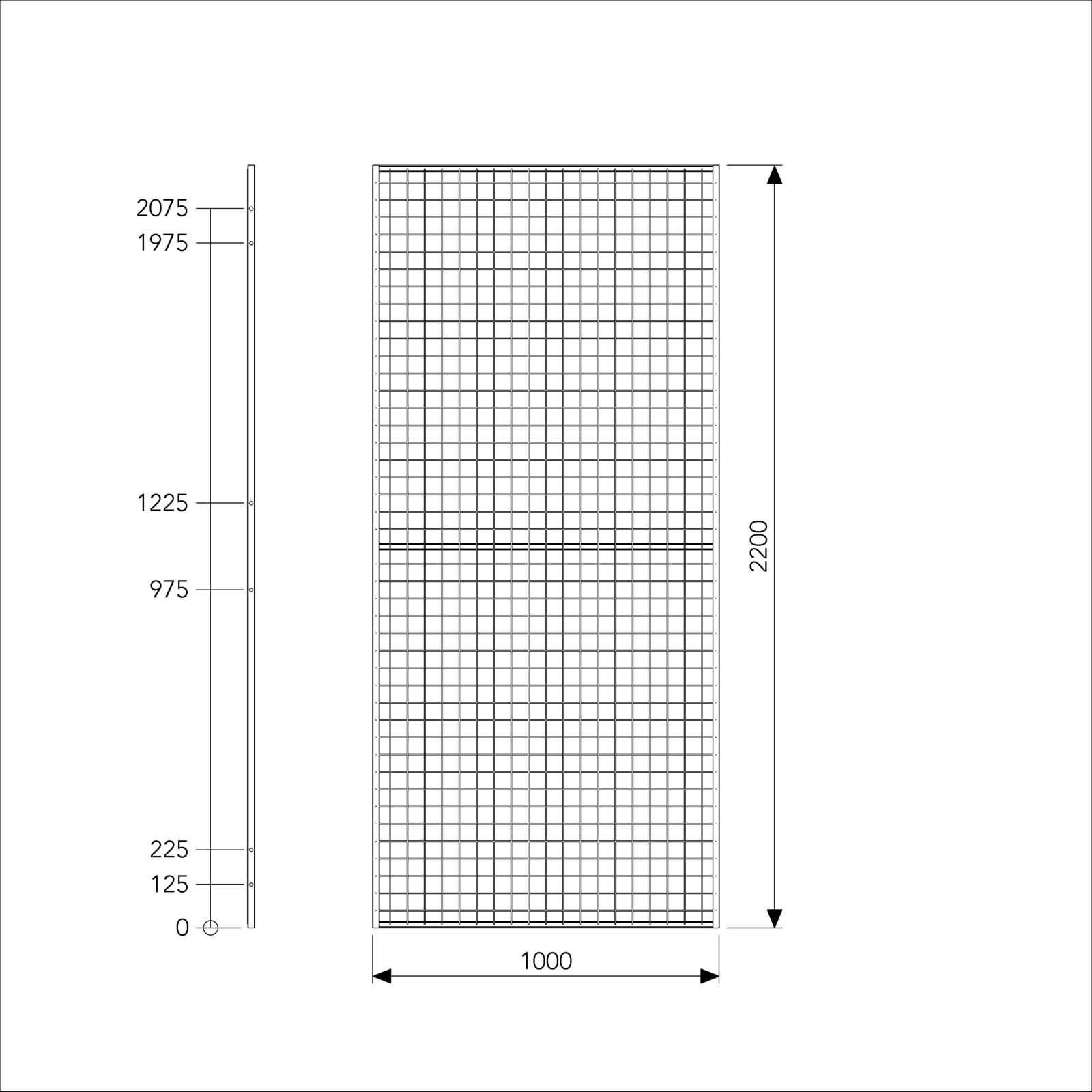 Panel UR 350 is available in 8 widths between 200 mm up to 1500 mm. The mesh panels can be modified on-site to fit any space, providing security where required. The mesh, constructed from press welded 2.5 mm wires with mesh aperture 50×50 mm, is welded to a 19×19 mm tubular frame for added strength. The system is fully demountable and relocatable. The panels are supplied powder coated as standard with a grey RAL 7037 finish, however other RAL colours are available upon request. The panels can also be supplied in hot dip galvanized execution for external use or in cold storage areas.